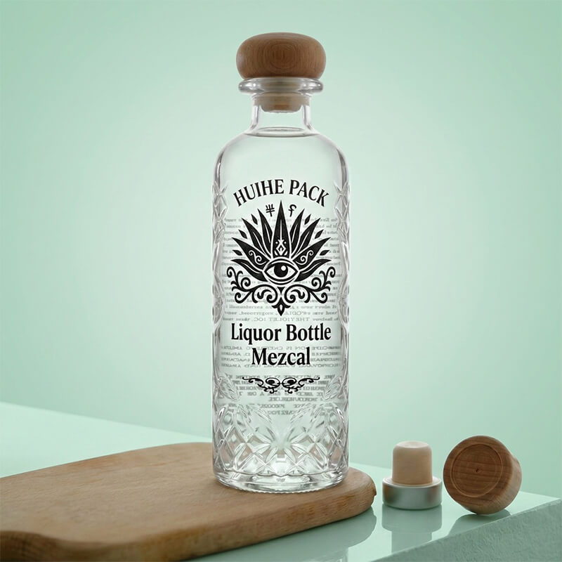 Eleve su marca de bebidas espirituosas con nuestras botellas de mezcal de vidrio premium, diseñadas para una presentación y durabilidad excepcionales. Elaboradas con vidrio de alta calidad con intrincados patrones en relieve, estas botellas presentan una estética sofisticada que mejora el posicionamiento premium de su producto. El elegante cierre de corcho de madera añade un toque de sofisticación natural al tiempo que garantiza una integridad óptima del sellado.