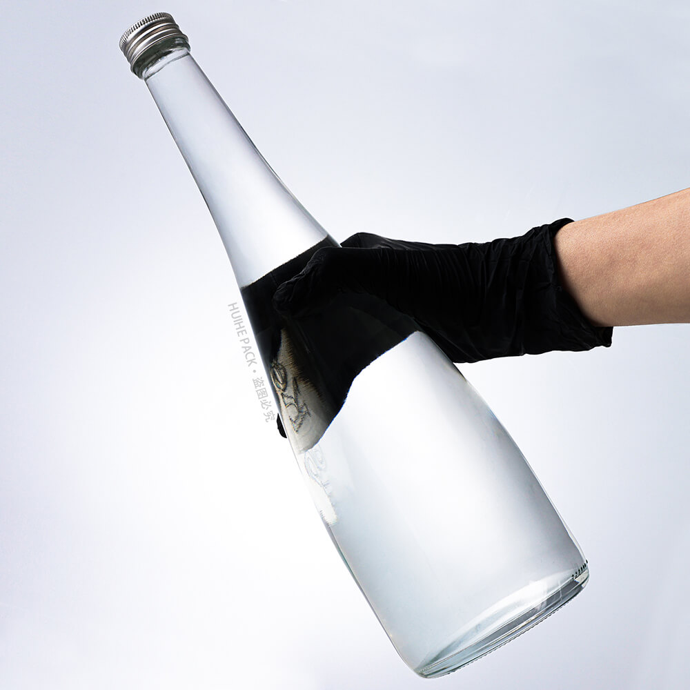 Esta botella de agua de vidrio de 900 ml presenta una forma cónica alargada y elegante: mide 322 mm de alto con un diámetro de base de 93 mm, presenta curvas suaves y fluidas y un acabado cristalino que se siente moderno y lujoso, perfecto para marcas de agua mineral de alta gama que buscan causar una impresión refinada.