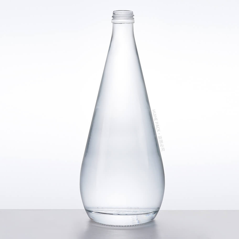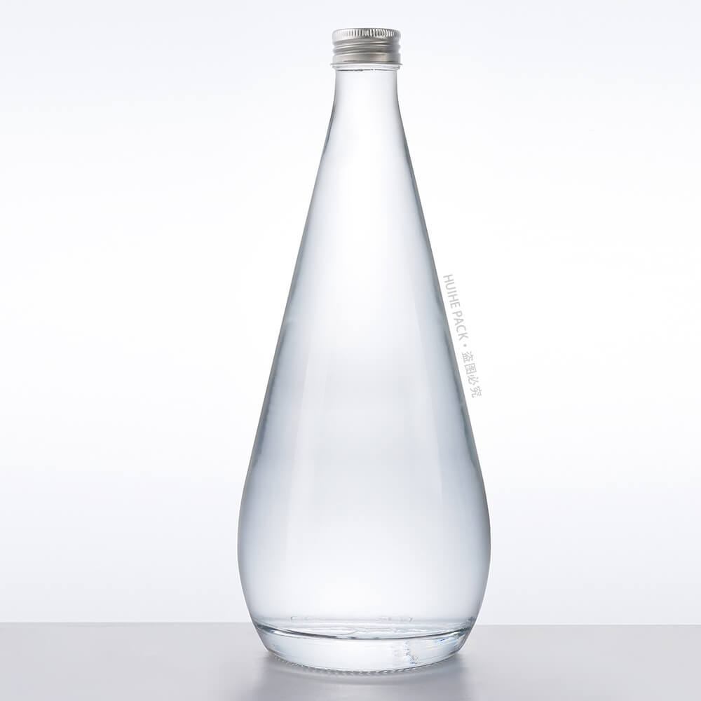 Esta botella de agua de vidrio de 775 ml cuenta con una silueta distintiva en forma de lágrima: mide 255 mm de alto con un diámetro de base de 101 mm, su curva suave y ampliada y su acabado cristalino exudan un encanto lujoso y moderno, perfecto para marcas de agua mineral de alta gama que buscan destacar.