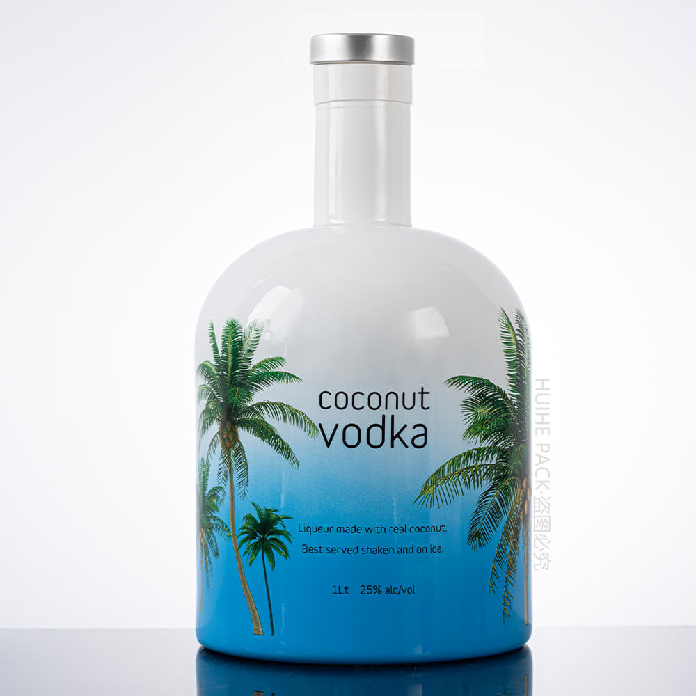 Botella de vidrio de 1 litro para envasado de licor y licor de coco.