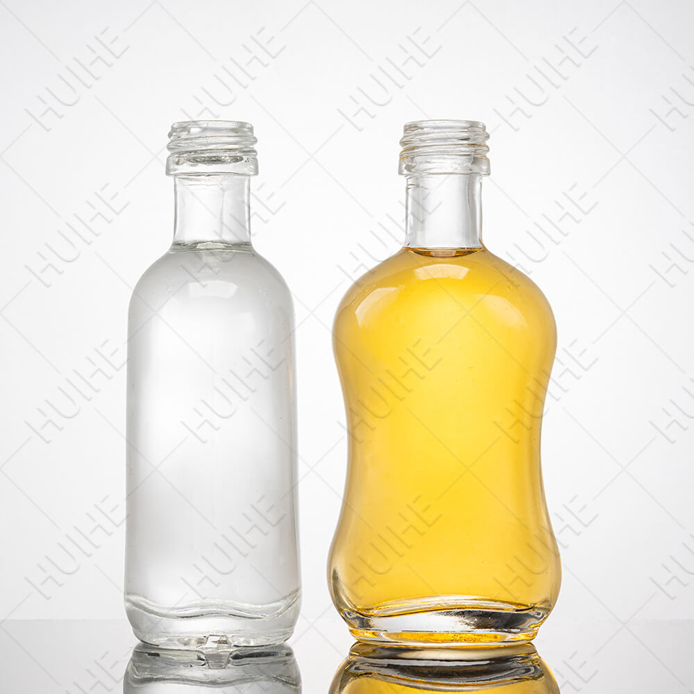 Esta minibotella de licor de vidrio de 50 ml de Huihe presenta una silueta curvilínea única con un cuello con tapa de rosca, ideal para muestras de bebidas espirituosas, degustaciones premium u ofertas promocionales, ya que muestra los líquidos con claridad y permite una marca destacada. Elaborado con vidrio de alta calidad, se somete a una inspección 100% para garantizar una calidad estable, sin roturas y un sellado sin fugas.
