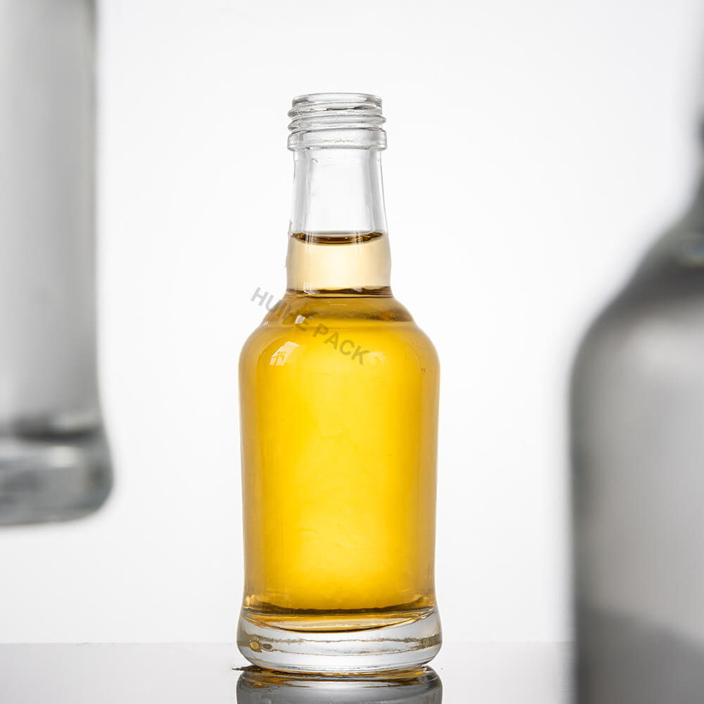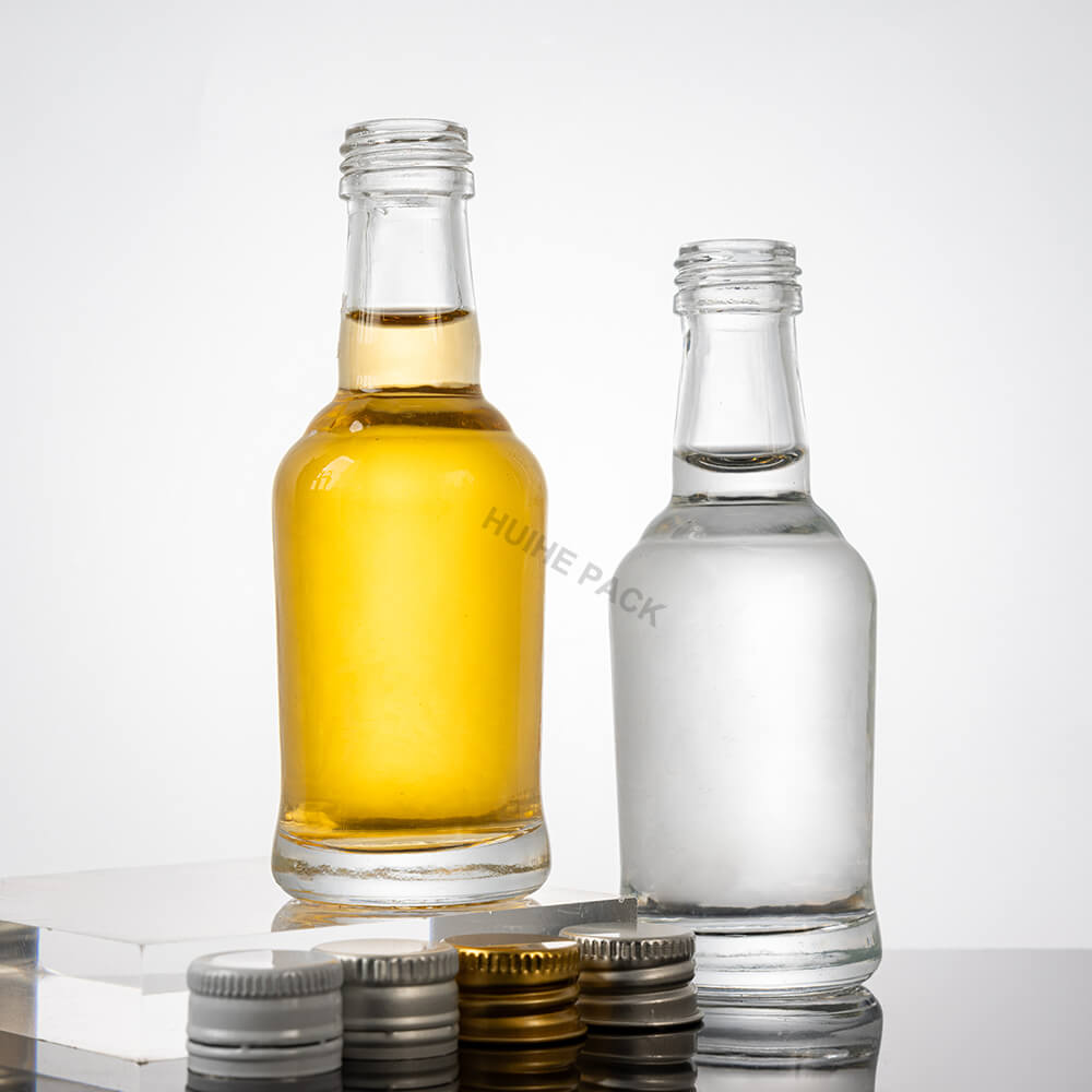 Esta minibotella de licor de vidrio de 50 ml de Huihe presenta una silueta refinada con un cuello cónico, ideal para muestras de bebidas espirituosas, degustaciones premium o usos promocionales, ya que muestra los líquidos con claridad y permite una marca distintiva. Elaborado con vidrio de alta calidad, se somete a una inspección 100 % para garantizar una calidad estable, sin roturas y un sellado sin fugas.