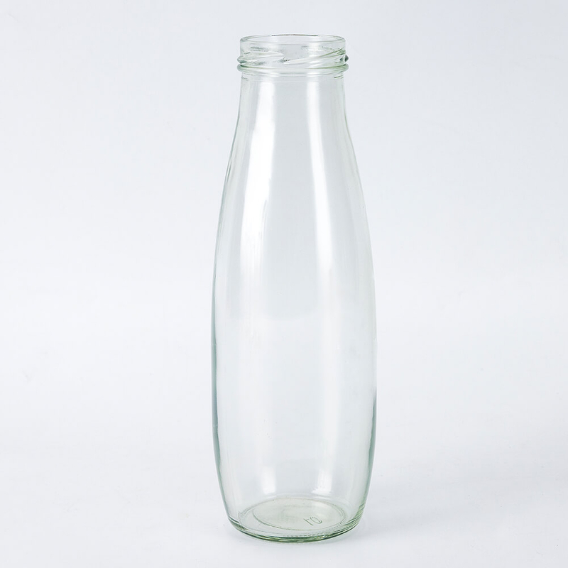 Esta botella de vidrio para lácteos presenta una silueta esbelta y curva: un cuello estrecho y roscado fluye hacia un cuerpo suavemente ahusado que se ensancha ligeramente en la base, combinado con vidrio transparente que muestra el contenido claramente. Es adecuado para diversos productos lácteos y bebidas.